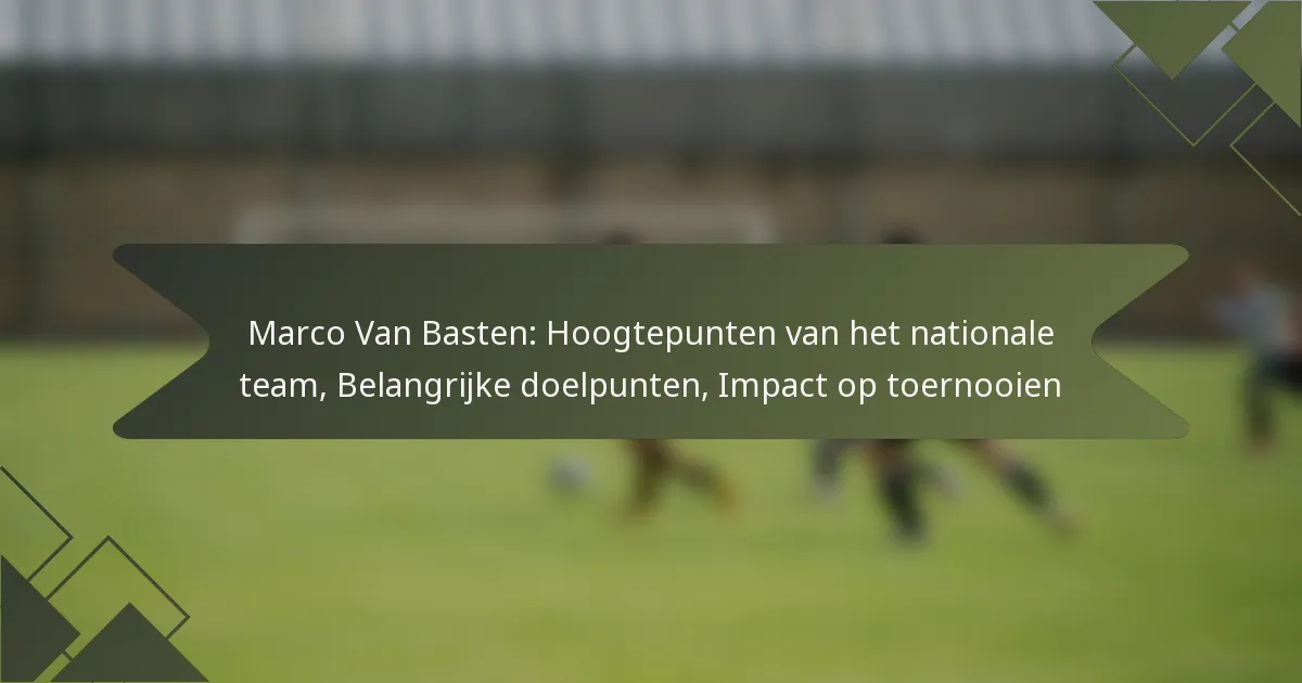 Marco Van Basten wordt gevierd om zijn opmerkelijke bijdragen aan het Nederlandse nationale team, vooral tijdens grote toernooien in de late jaren 1980 en vroege jaren 1990. Zijn belangrijkste hoogtepunten omvatten cruciale doelpunten, opvallende prestaties en een blijvende impact op de Nederlandse voetbalcultuur.